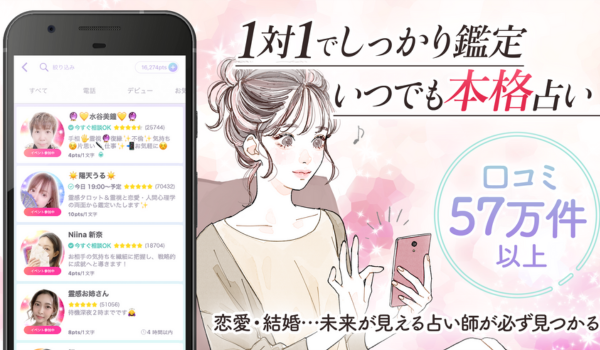 - 鑑定人数1万人超え!超人気の占い師がたくさん在籍